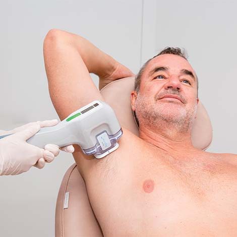The sweat glands responsible for the excessive sweating will be targeted and subsequently destroyed. It will take just one or two sessions to see results. While results can vary between individuals, the majority of our patients will see an average of 82% reduction in sweating from their underarms.